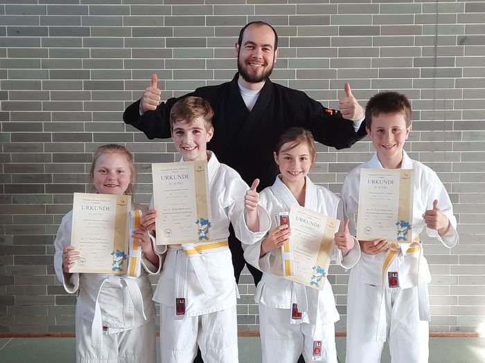 junge Ju-Jutsukas aus dem Kindertraining stellten sich der Gürtelprüfung.