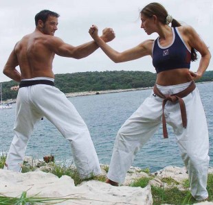 Streifen) ablegen. Beide trainieren seit etwa 13 Jahren JuJutsu